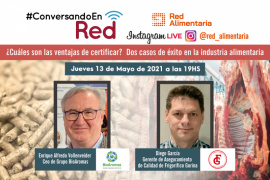 ¿Cuáles son las ventajas de certificar? Dos casos de éxito en la industria alimentariaFecho del Evento: 13/05/2021 19:00hsTe invitamos a participar de una nueva cita en Conversando en Red¿Por qué su empresa debería certificar? ¿Cuáles son las certificaciones obligatorias y cuáles voluntarias? ¿Qué beneficios nos brindan al momento de exportar?¿Cuál es el valor agregado que le dan a nuestro producto? ¿Qué estamos comunicando a nuestros clientes al certificar?Estas y otras preguntas las responderemos en un nuevo encuentro de Conversando en Red el próximo 13 de mayo junto a Enrique Alfredo Vollenveider -CEO de Grupo de BioAromas- y Diego García -Gerente de Aseguramiento de Calidad de Frigorífico Gorina-, dos empresas que avanzan exitosamente en el camino de la certificación.Los esperamos el 13 de mayo a las 19 hs. por el vivo de Instagram de @red_alimentariahttps://www.instagram.com/red_alimentaria/Compartir en FacebookCompartir en TwitterCompartír en Linkedin Eventos - Calendario