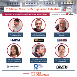 El 18 de marzo de 2022, Red Alimentaria realizará la octava edición del Curso de Refrigeración Industrial, dirigido a todos los profesionales de la industria alimentaria que quieran actualizarse en temas de tecnologías para compresores, almacenes inteligentes, sistemas de refrigeración, evaporadores y diseño higiénico. Los profesionales, que también fueron parte de los siete cursos anteriores que se pueden volver a ver en el canal de YouTube de Red Alimentaria, presentarán los siguientes temas: 14.30hs.: Ing. Hernan Bellante, Gerente división Lubricantes Industriales de LAAPSA: ¿Cómo conseguimos que el lubricante del compresor sea GRATIS? Las tendencias de nuevos aceites para compresores de amoníaco, con menores valores de viscosidad y mejores aditivos antidesgaste nos permiten, entre otras cosas, asegurar un ahorro en el consumo eléctrico real y medible. Por pequeño que pueda parecer, el impacto económico anual es millonario. La selección inteligente del aceite que debemos usar en el compresor de amoníaco nos va a garantizar no sólo mejor rendimiento y mayor durabilidad / confiabilidad de los componentes mecánicos, sino que también ¡nos va a salir GRATIS! Nuevas tecnologías, productos originales, aprobaciones de fabricantes, garantías firmadas, trayectoria empresarial, servicio post venta…son sólo algunos de los valores que como proveedores sabemos garantizar. 15. hs.: Ing. Matias Firman, Gerente de Coordinación de Crosetto Ingeniería: Túneles de congelamiento continuo (TRV) Principios y bases de funcionamiento de los túneles de congelamiento continuo. Integración en líneas de producción. Beneficios del mismo sobre la trazabilidad del producto. Software integral de gestión y mantenimiento del equipo. 15.30 hs.: Ing. Adrián Ingaramo de Frio-Raf: Las cañerías encierran un por qué Se aborda el tema de cañerías de refrigeración Industrial de amoníaco. Los fluidos bifásicos deben contar con tratamiento especial en las cañerías. Los diámetro, las pendientes, los equipos, todo debe ser tenido en cuenta para que un sistema de refrigeración funcione con máxima eficiencia. Esta tarea integral arranca en el correcto diseño y la mejor ejecución. Se presentarán algunos trucos en cañerías en las distintas partes de un circuito y el por qué realizarlos en la forma más conveniente. Esto es tarea de especialistas experimentados. 16 hs.: Ing. Jésica Weiner de Thermofin: Tipos y características de deshielos en evaporadores industriales Para lograr la mejor condición de trabajo de un evaporador sometido a bajas temperaturas, debemos considerar, entre otros factores, que éste cuente con un adecuado sistema de descongelamiento. En este encuentro, conversaremos sobre las características de los diferentes sistemas de deshielos aplicados en los evaporadores industriales. 16.30 hs.: Ing. Guillermo Rubino de INTI Litoral Sede Rafaela: Diseño higiénico de instalaciones en la industria alimentaria. Ensayo de soldaduras higiénicas El diseño y construcción de las instalaciones en la industria alimentaria analizada desde un punto de vista higiénico es indispensable para garantizar la inocuidad de los alimentos y facilitar su limpieza. En esta oportunidad se presentarán las guías de EHEDG relacionadas a control de soldaduras higiénicas. 17 hs.: Ing. Guillermo Aglietto de UTN: Protección de variadores de velocidad en compresores de amoníaco. Parte 4: ruido eléctrico que emite el variador Se responderá a la pregunta sobre si los variadores de gran potencia pueden afectar el entorno eléctrico y traer problemas a otras cargas electrónicas. Al finalizar, todos los disertantes cerrarán la Octava Edición del Curso de Refrigeración Industrial con una Mesa Virtual en la cual responderán en vivo a las preguntas de los asistentes. La jornada está patrocinada por: FRIO RAF, CROSETTO INGENIERÍA, THERMOFIN, LAAPSA, QRS REFRIGERATION y CLS. Y es auspiciada por: TECNOFIDTA, INTI, CAME, ARA, UTN, ADSE. La inscripción, sin costo, se encuentra disponible a través de este link: https://forms.gle/nNxmpgaQLq7sbo776. La transmisión se realizará por YouTube desde las 14hs. (Argentina). Más información: info@redalimentaria.com / (+54911) 4076-3131